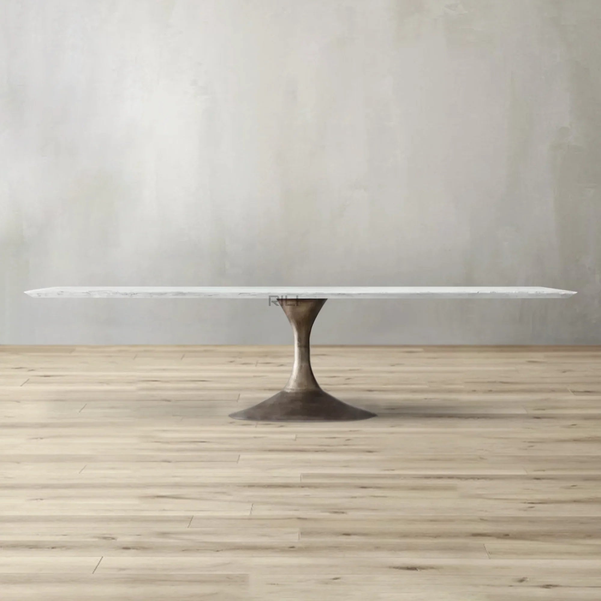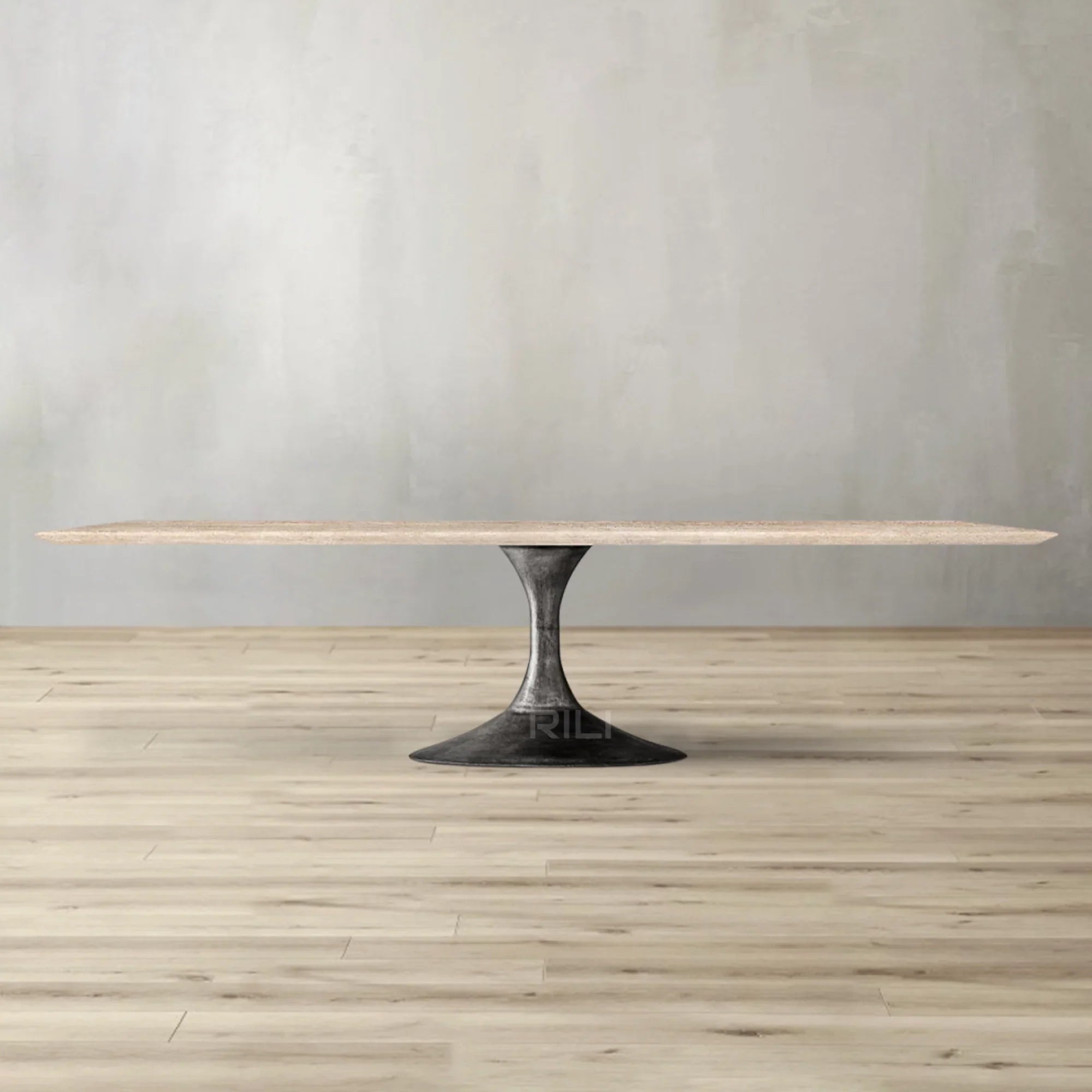 The Aero series draws inspiration from the flowing lines of mid-century design and focuses exclusively on dining and coffee tables. Balanced proportions and arched, sculptural curves define a minimalist yet confident silhouette, while a cast-steel pedestal base offers sturdy support and generous legroom. Paired with a finely beveled oak or walnut top, the restrained sheen of metal contrasts elegantly with the warmth of wood. From dining gatherings to relaxed living-room conversations, Aero carries a unified design language across sizes—light yet grounded—balancing durability with everyday tactility.