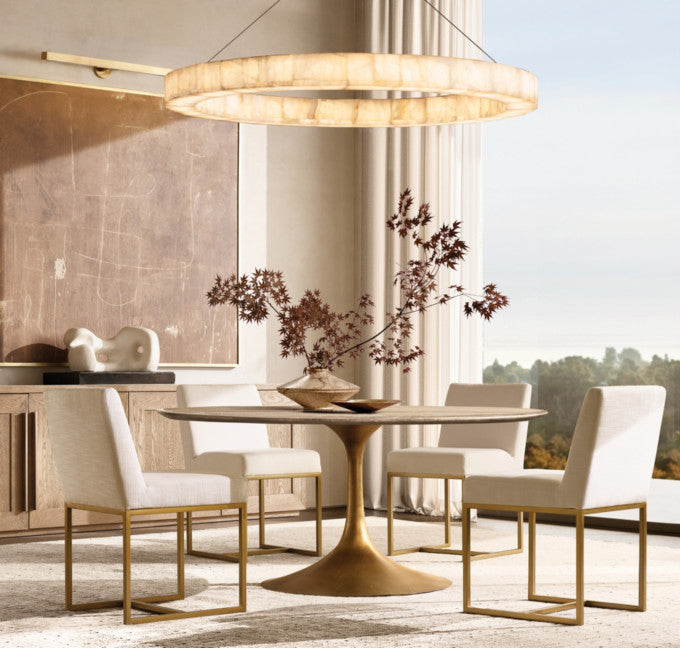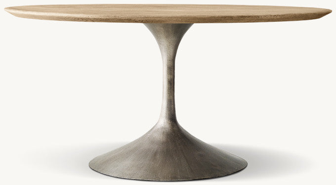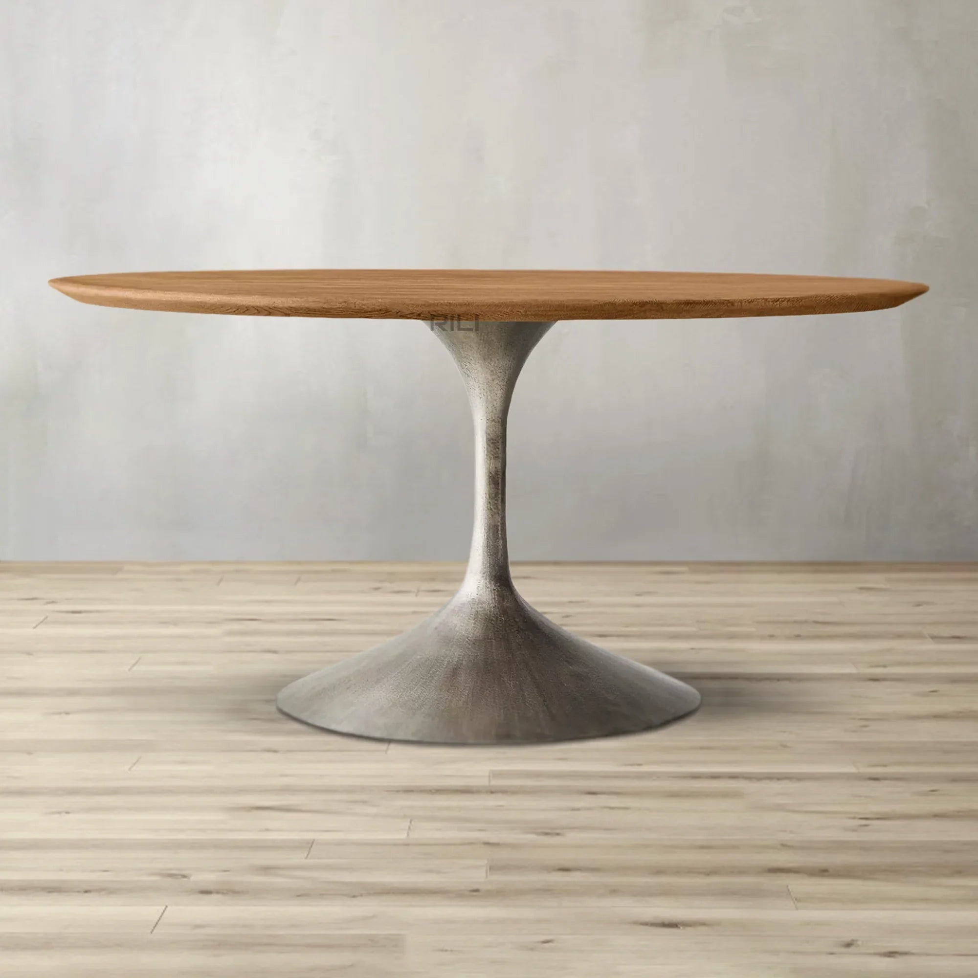 The Aero series draws inspiration from the flowing lines of mid-century design and focuses exclusively on dining and coffee tables. Balanced proportions and arched, sculptural curves define a minimalist yet confident silhouette, while a cast-steel pedestal base offers sturdy support and generous legroom. Paired with a finely beveled oak or walnut top, the restrained sheen of metal contrasts elegantly with the warmth of wood. From dining gatherings to relaxed living-room conversations, Aero carries a unified design language across sizes—light yet grounded—balancing durability with everyday tactility.