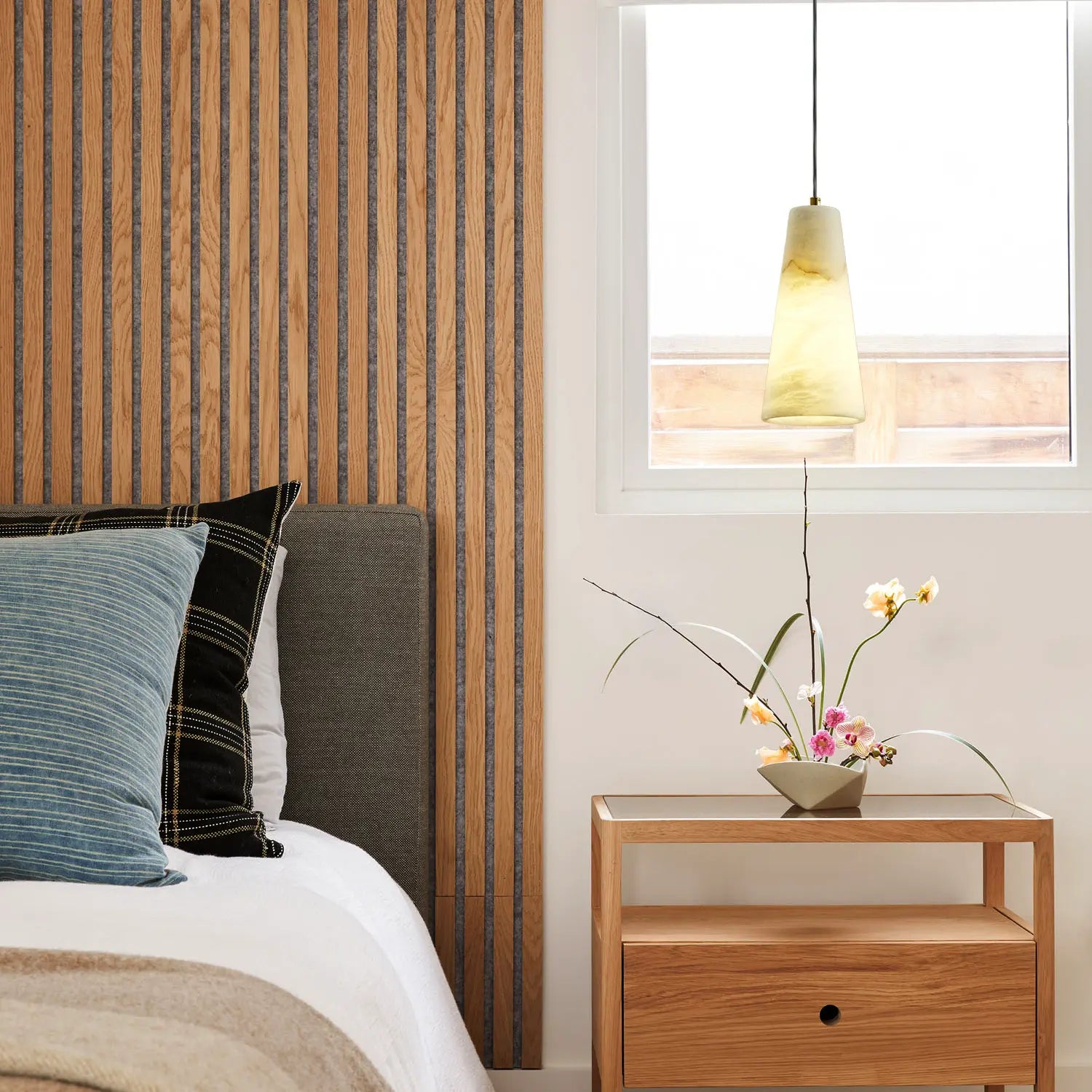 Alabaster is a smooth, translucent stone known for its soft white or cream color and ability to diffuse light beautifully. Valued since ancient times, it's often used in lamps to create a warm, calming glow. Each alabaster piece is naturally unique, adding character to every design. It pairs well with metals or wood for varied styles and rich visual contrast.