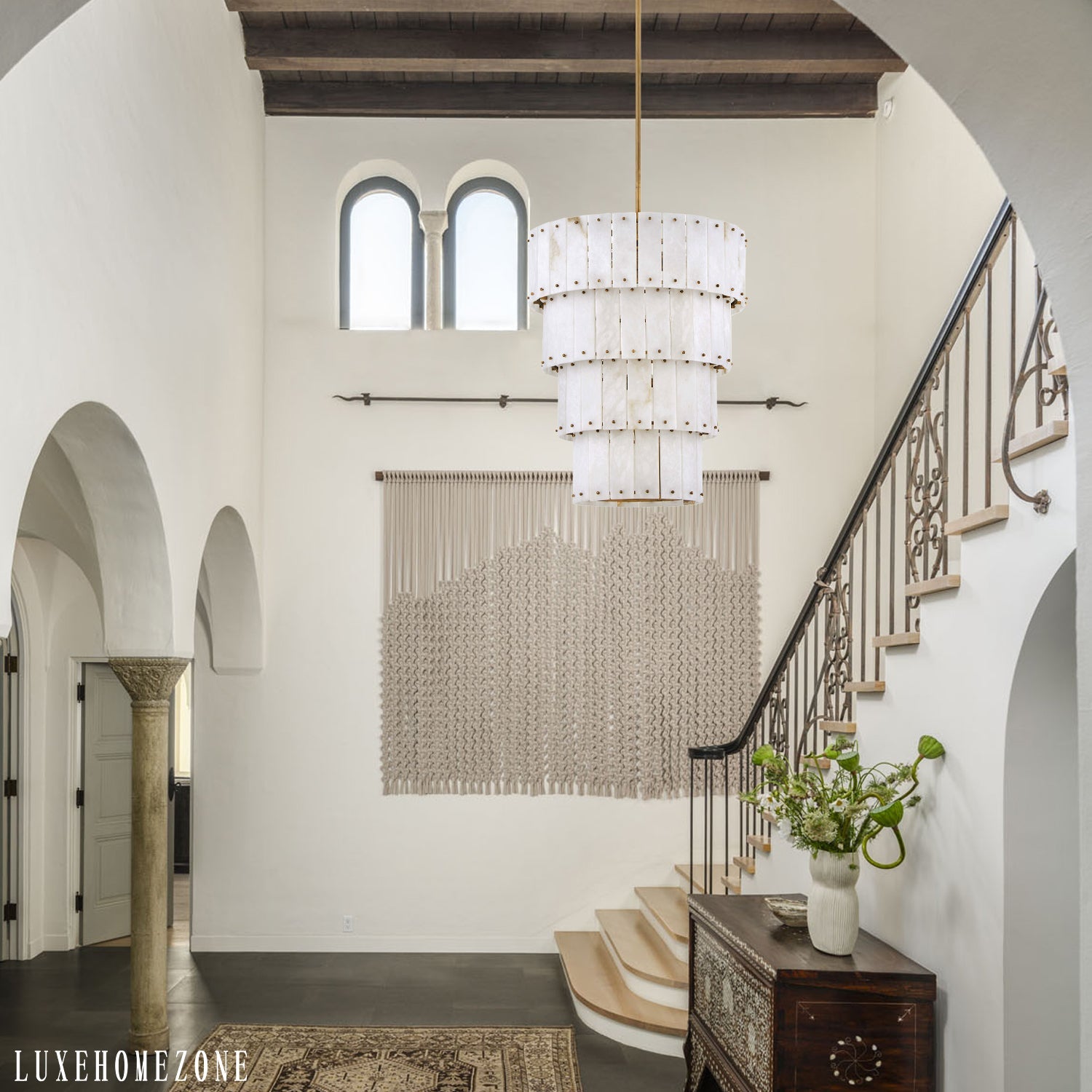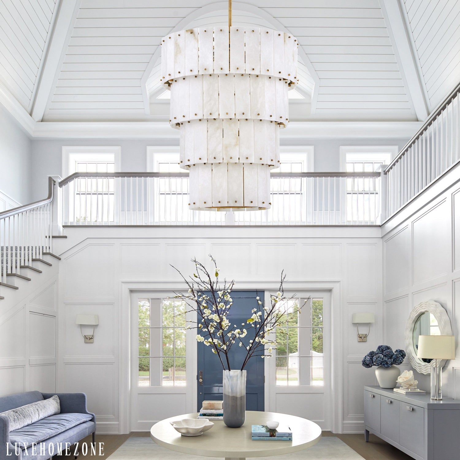 The Alabster Rancho 4-Tier Round Chandelier blends mid-century modern and contemporary styles. Crafted from durable steel, this chandelier features an exquisite alabaster shade for a touch of luxury.Simone’s LEDs provide efficient lighting, allowing you to create the ambiance you desire. The chandelier features sloped ceiling adaptations, allowing you to easily place it in a variety of settings.