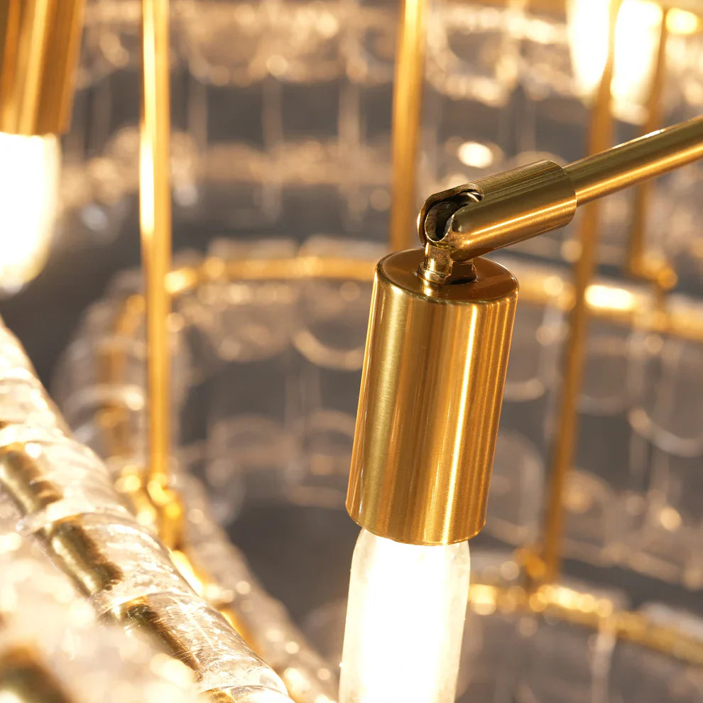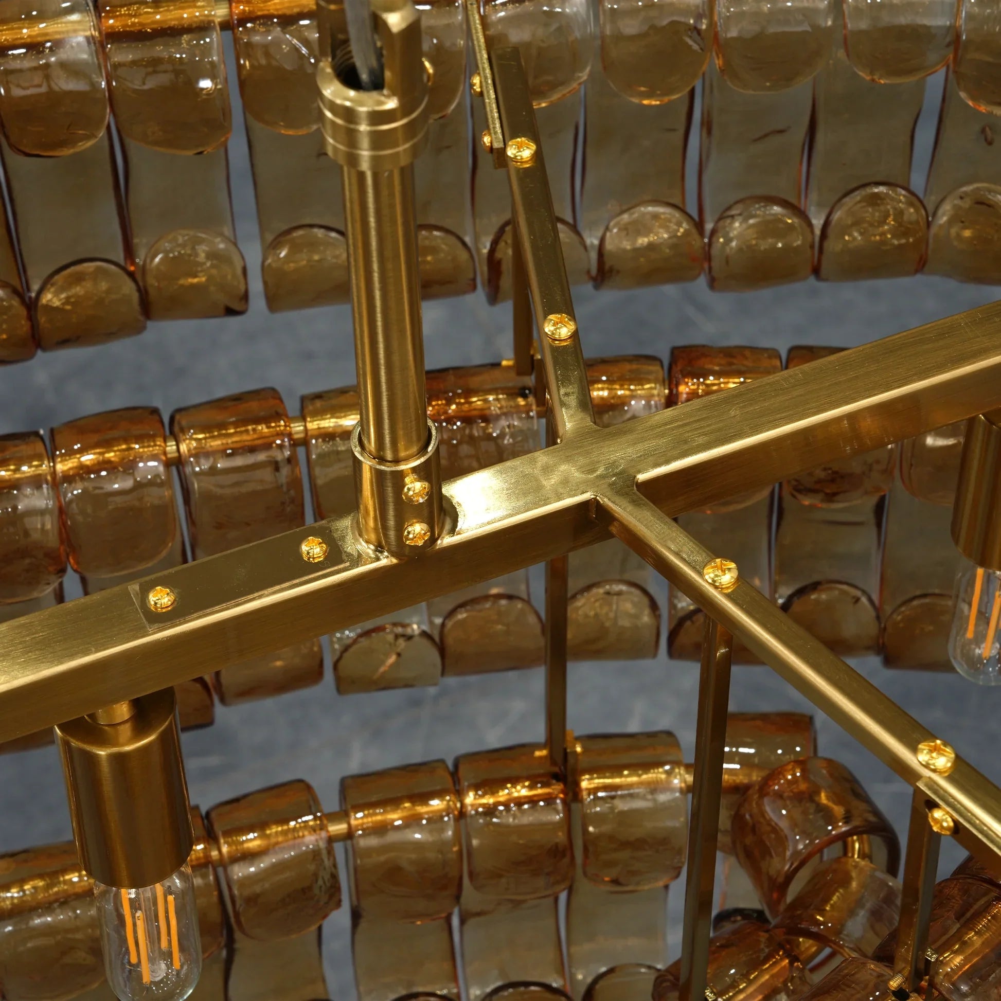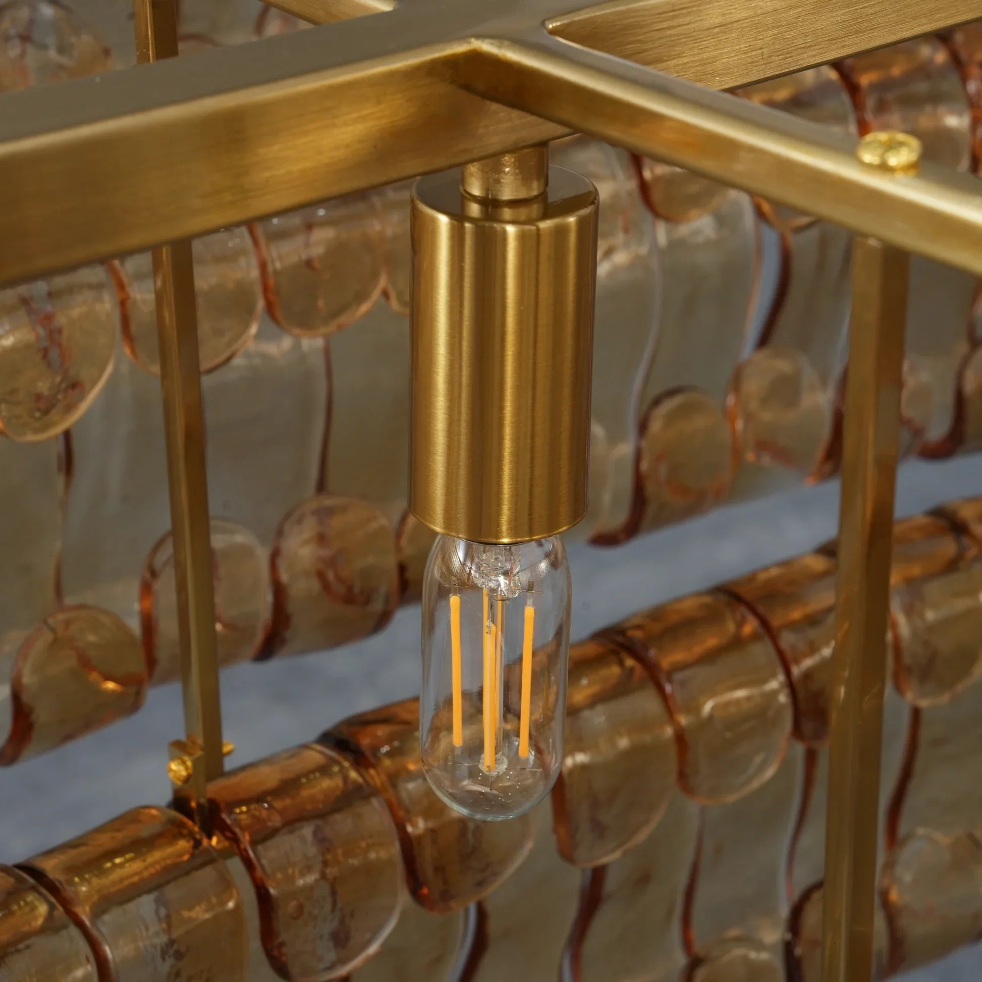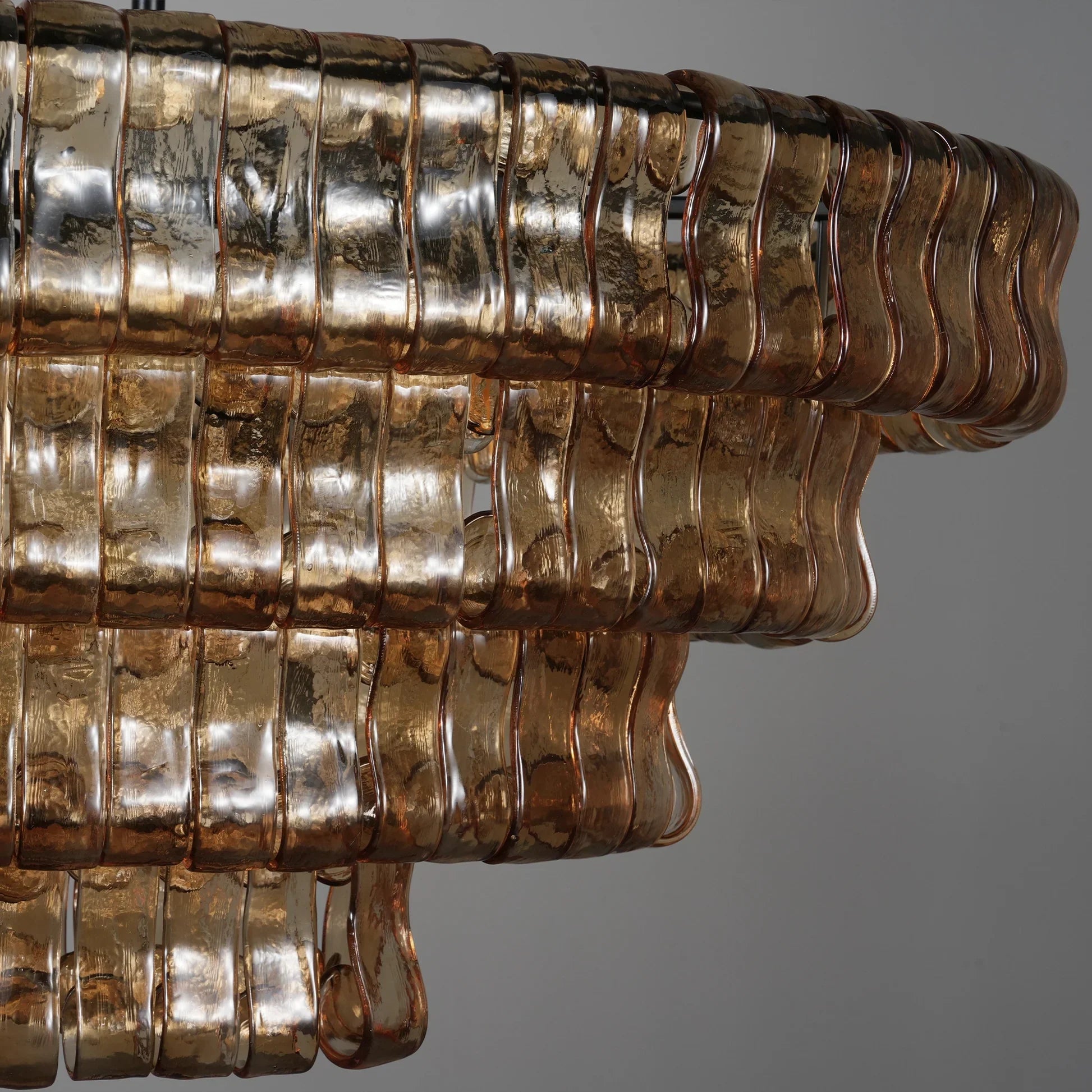 Inspired by Italy's famous decorative glass, the Lumora Art Glass Oval Chandelier 54" 65" cleverly diffuses light through curved pieces of textured glass. With its copper-plated finish, Ghiaccio elegantly brightens any room.