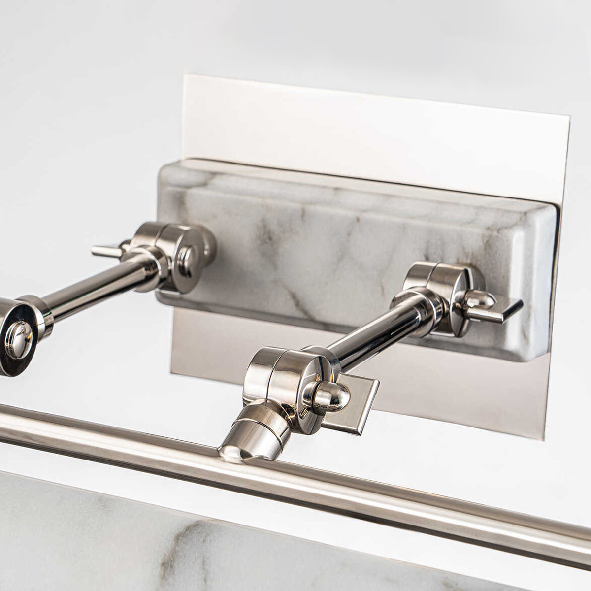 Art Winchfield Picture Light, which illuminate artwork in the optimal color spectrum. Unlike traditional fixtures, they provide full-spectrum illumination that is free of harmful infrared and ultraviolet rays. They are available in four designer finishes and two sizes to complement high-end artwork framing.