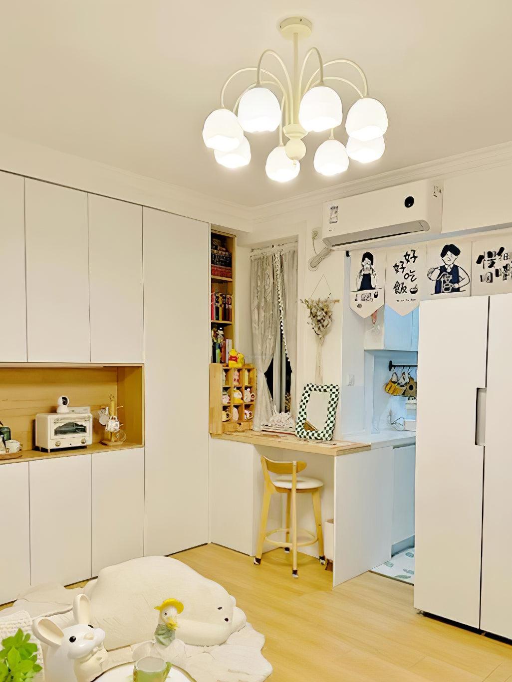 The Creamy Chandelier with 5/6/8 heads is a chic and contemporary enhancement for any room. Boasting a glass shade that seamlessly blends cream and white hues, this light fixture is poised to leave a lasting impression. Revel in the soft radiance of this fashion-inspired lighting, bringing a modern flair to your living space.