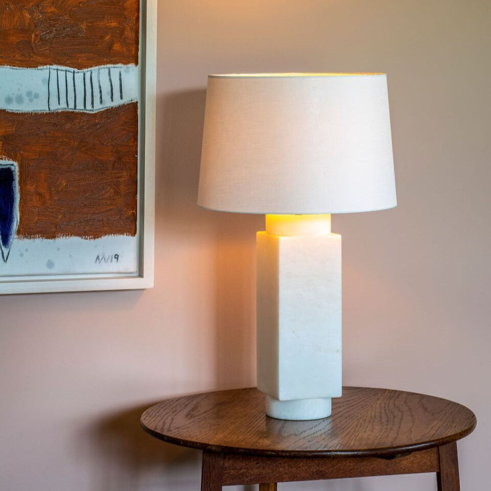 Alabaster is a smooth, translucent stone known for its soft white or cream color and ability to diffuse light beautifully. Valued since ancient times, it's often used in lamps to create a warm, calming glow. Each alabaster piece is naturally unique, adding character to every design. It pairs well with metals or wood for varied styles and rich visual contrast.