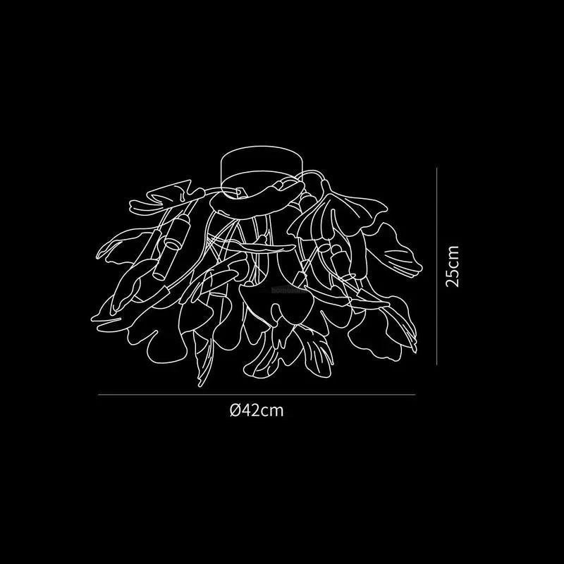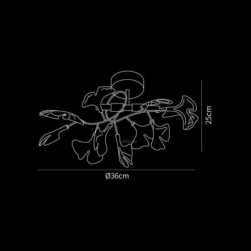 This Ginkgo Ceiling Lamp is crafted from iron and adorned with delicate ceramic ginkgo leaves. The overall design seamlessly blends natural elements with modern craftsmanship, exuding a natural charm while maintaining a contemporary aesthetic.
