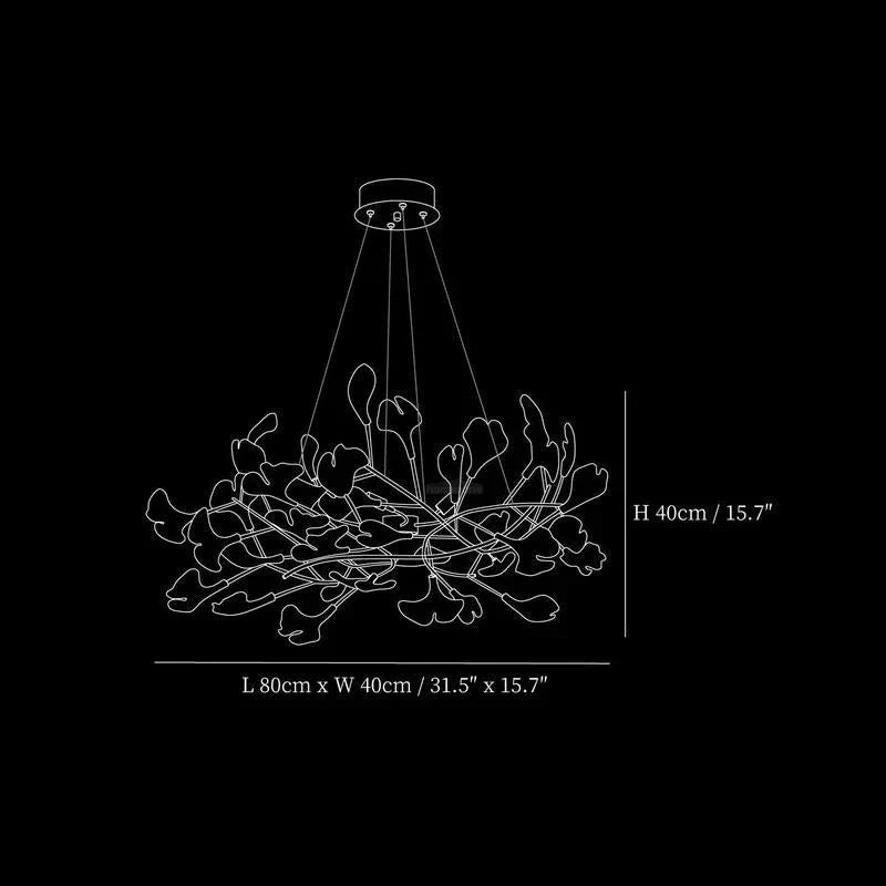 The Gingko Chandelier R seamlessly combines modern craftsmanship with elements from nature, resulting in a one-of-a-kind and stylish addition to any home space. Its iron bracket ensures stability and longevity, while the delicate ceramic ginkgo leaves capture and reflect light, creating an elegant and warm ambiance. This chandelier strikes the perfect balance between charm and modernity.