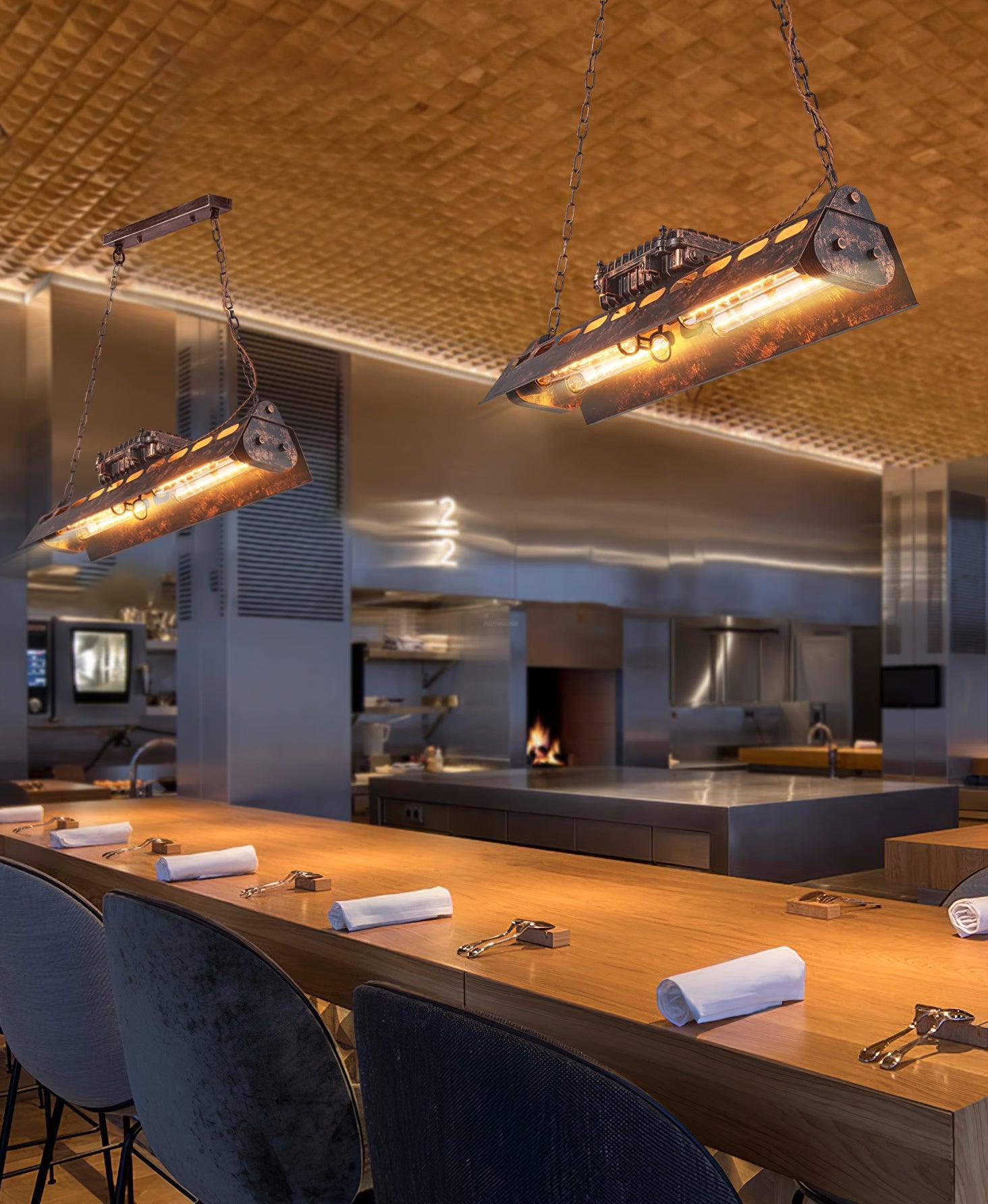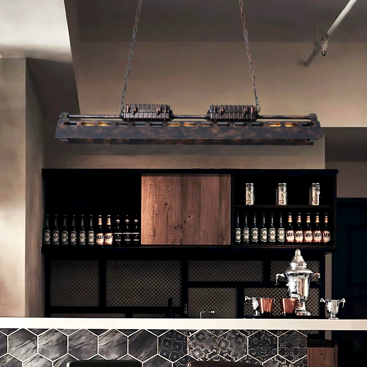 Illuminate your space with industrial charm and vintage allure! Our Industrial Steampunk Style Chandelier effortlessly blends rustic elements with industrial design, featuring a rectangular metal frame adorned with intricate hollow-out details. The rust finish adds character while Edison bulbs create a serene ambiance. Elevate your home with this chic pendant light, perfect for dining areas, kitchen islands, or any space in need of a touch of elegance and personality!