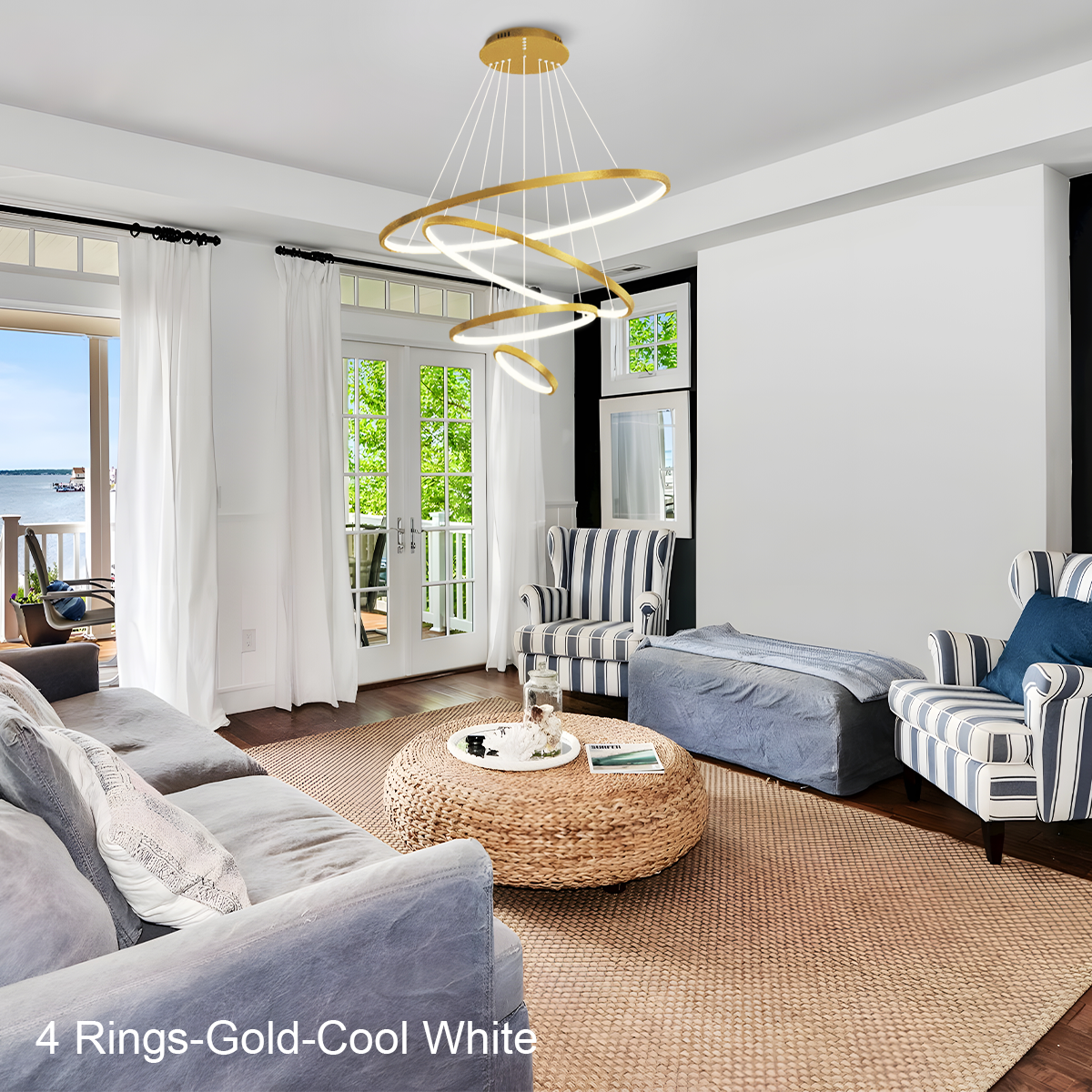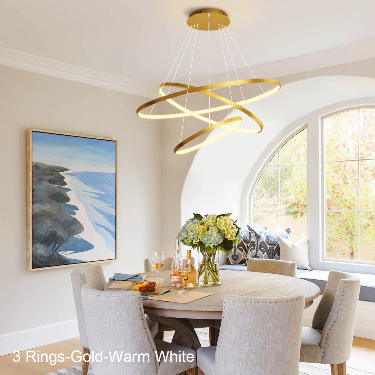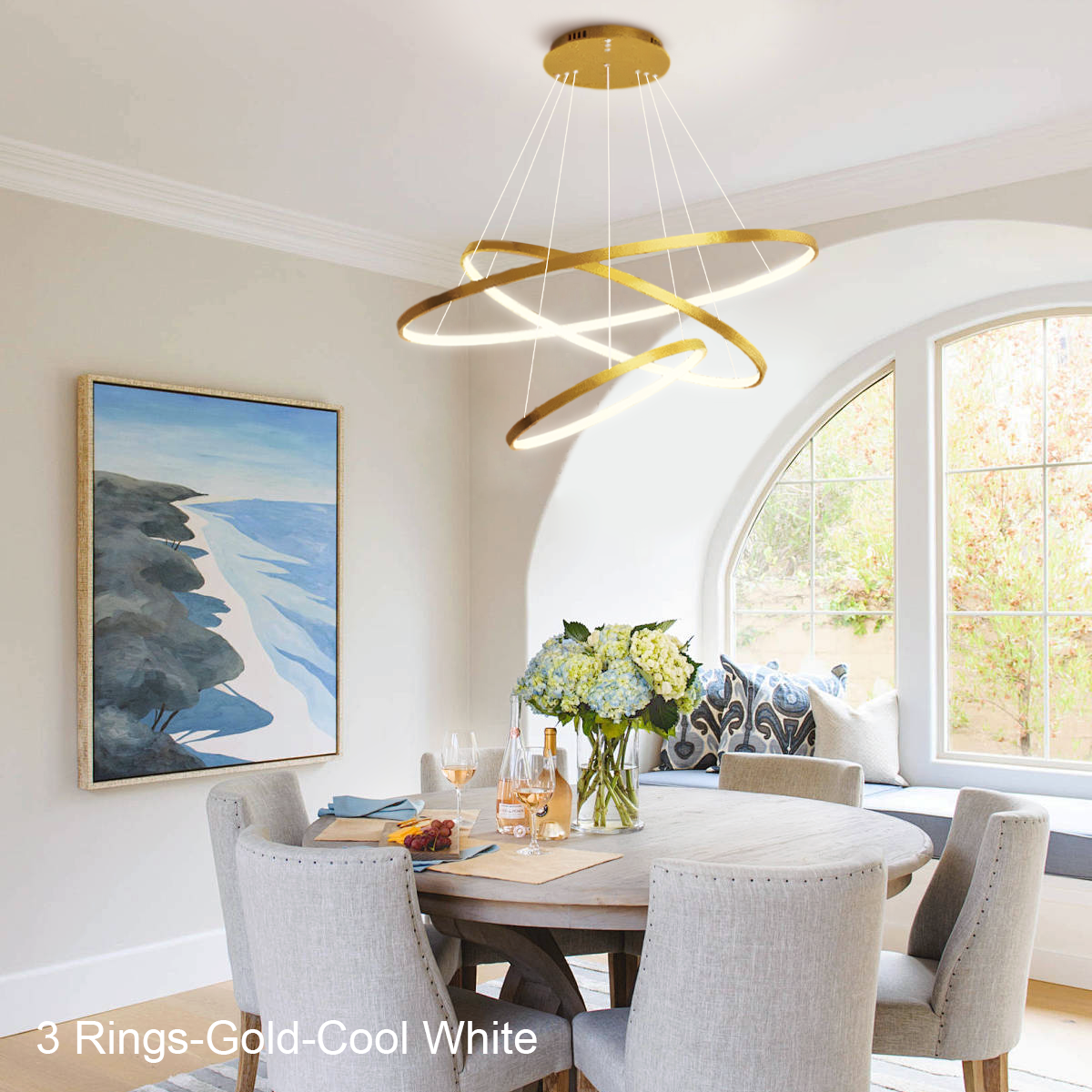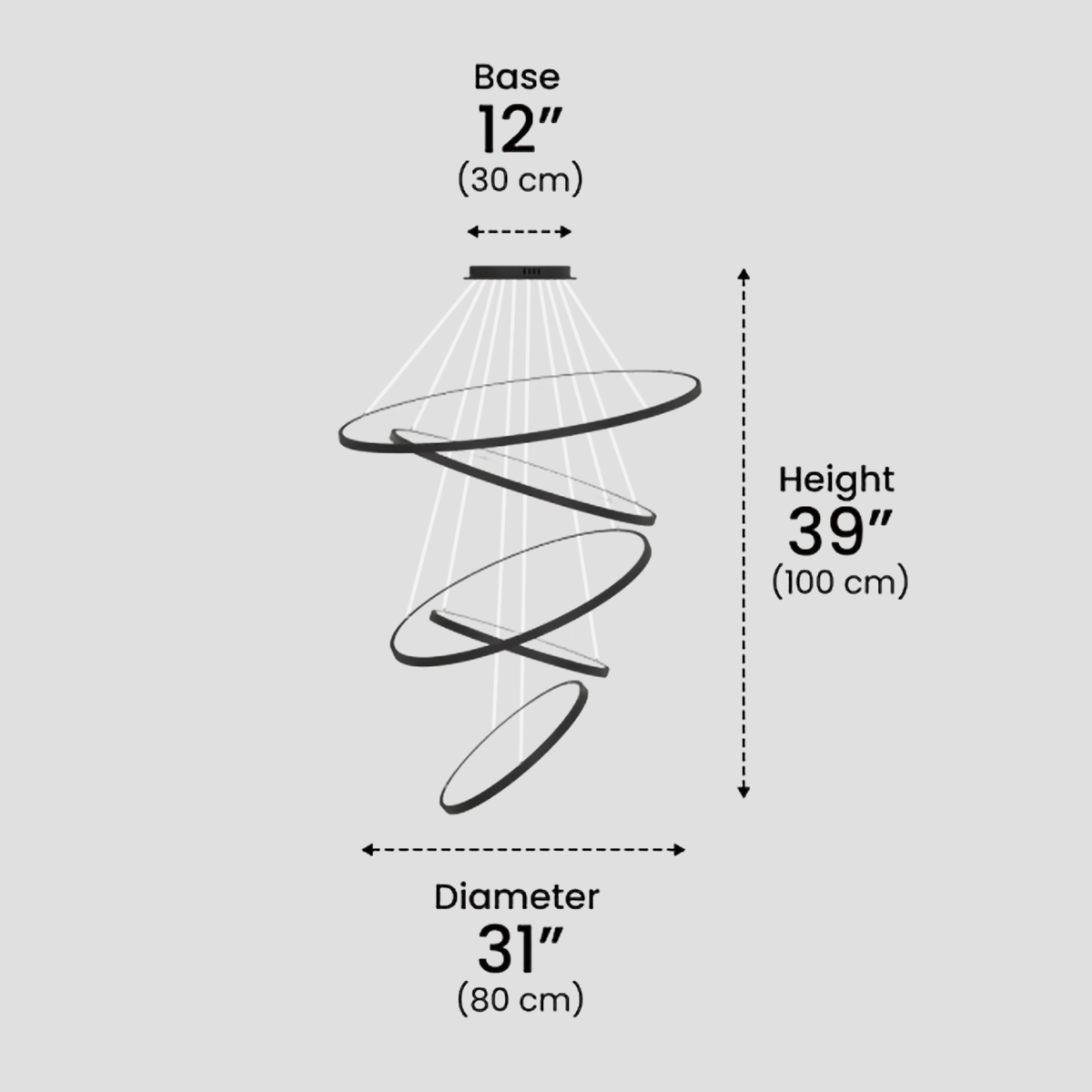 Janet is the icon of the modern chandelier. Add this timeless beauty to any indoor space and let the simplicity and elegance speak for itself. Janet is completely customizable with adjustable straps for each of the rings - Let your creativity do the work and create your masterpiece!