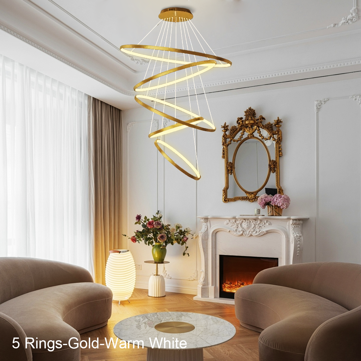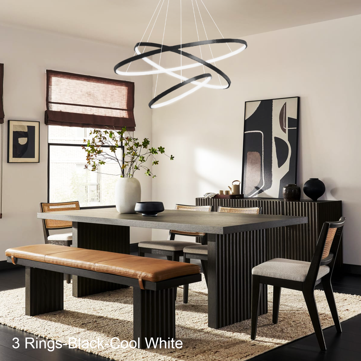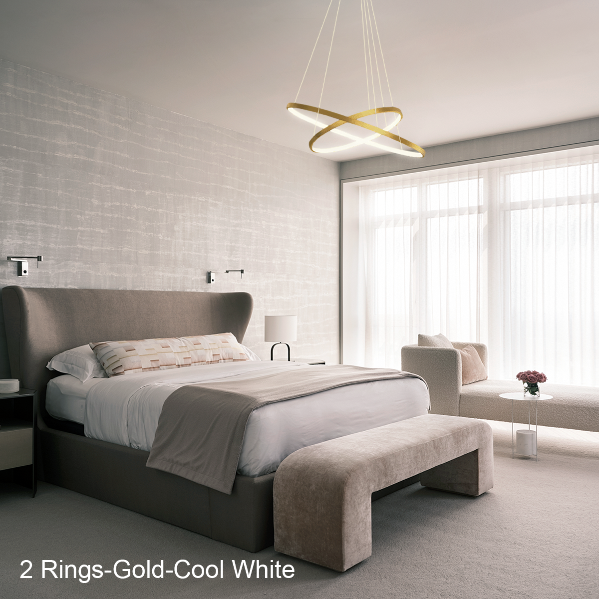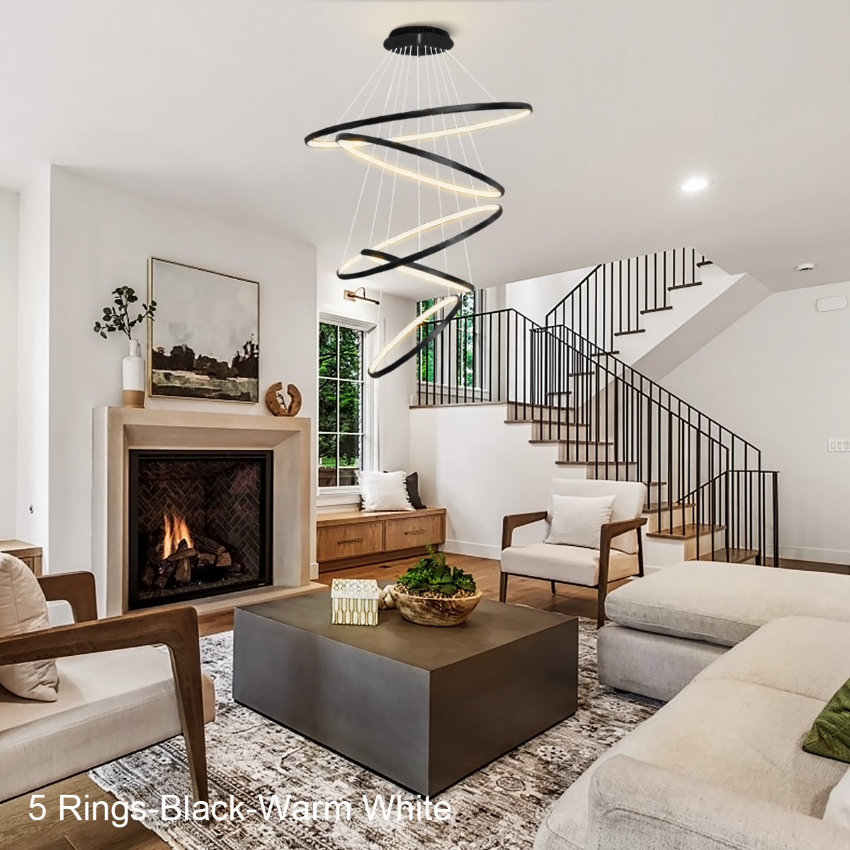 Janet is the icon of the modern chandelier. Add this timeless beauty to any indoor space and let the simplicity and elegance speak for itself. Janet is completely customizable with adjustable straps for each of the rings - Let your creativity do the work and create your masterpiece!