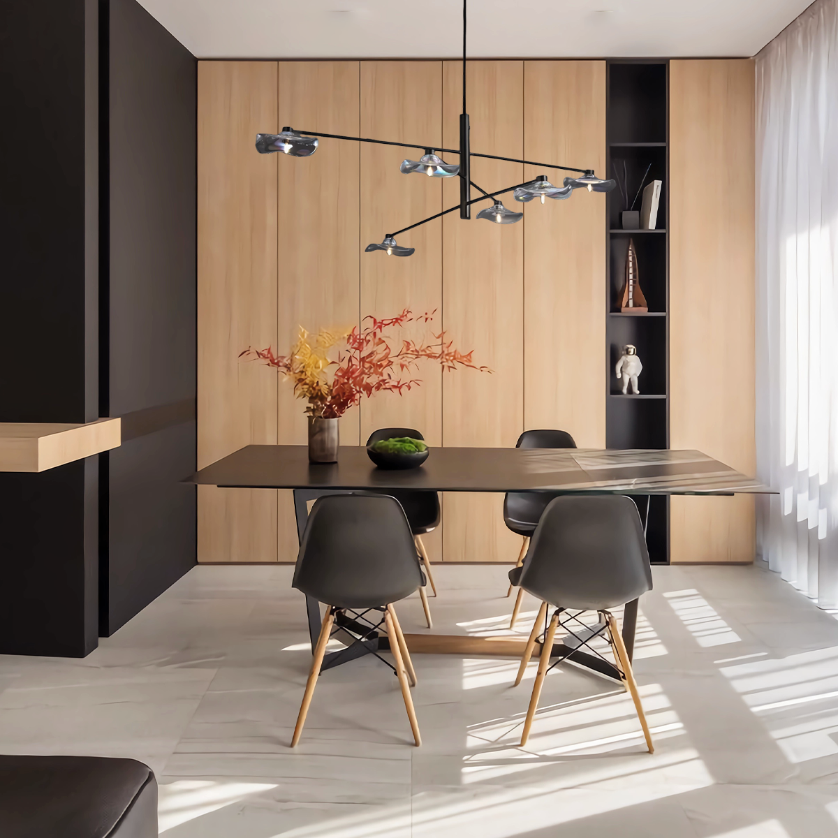 The Lotus Leaves Glass Chandelier is a modern masterpiece, perfect for illuminating living rooms, dining areas, and bedrooms. With a choice of 39.4'' or 47.2'' diameters, its chic design features intricately crafted glass leaves that exude sophistication. This exclusive chandelier transforms any room with its elegance and unique style. Crafted from premium metal and glass, it not only provides beautiful light but also adds a touch of refined luxury to your home.
