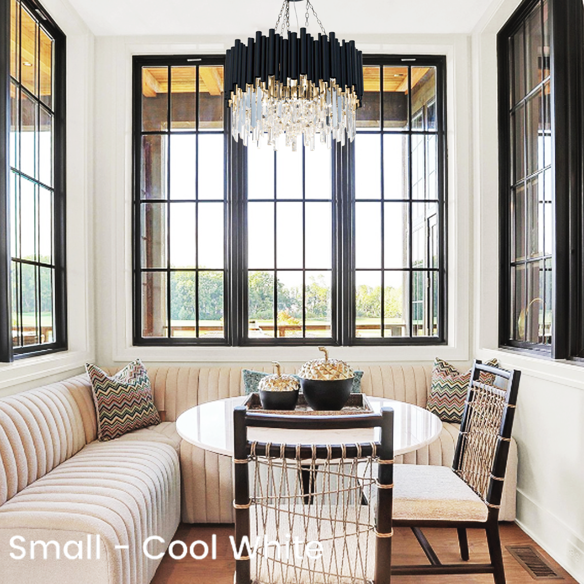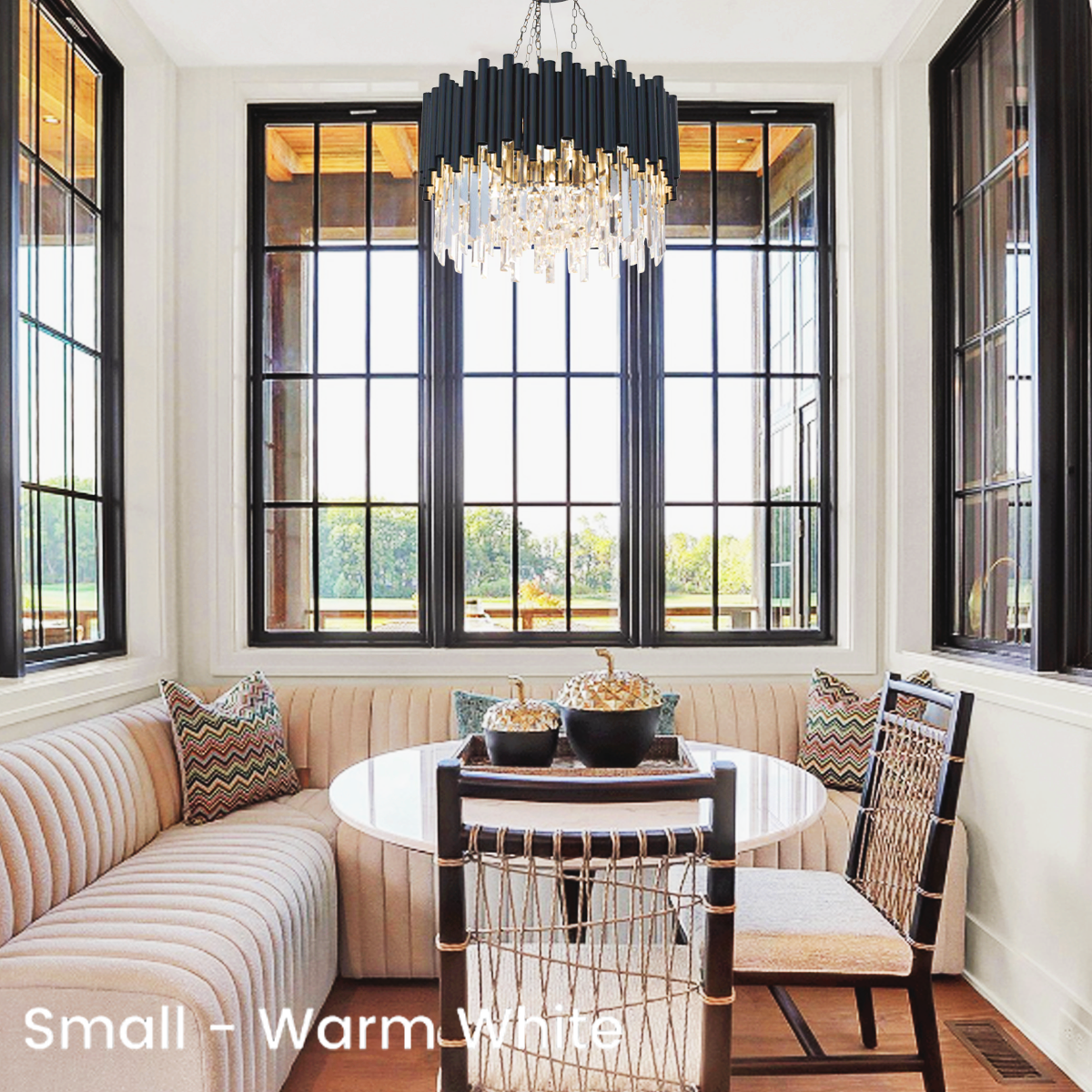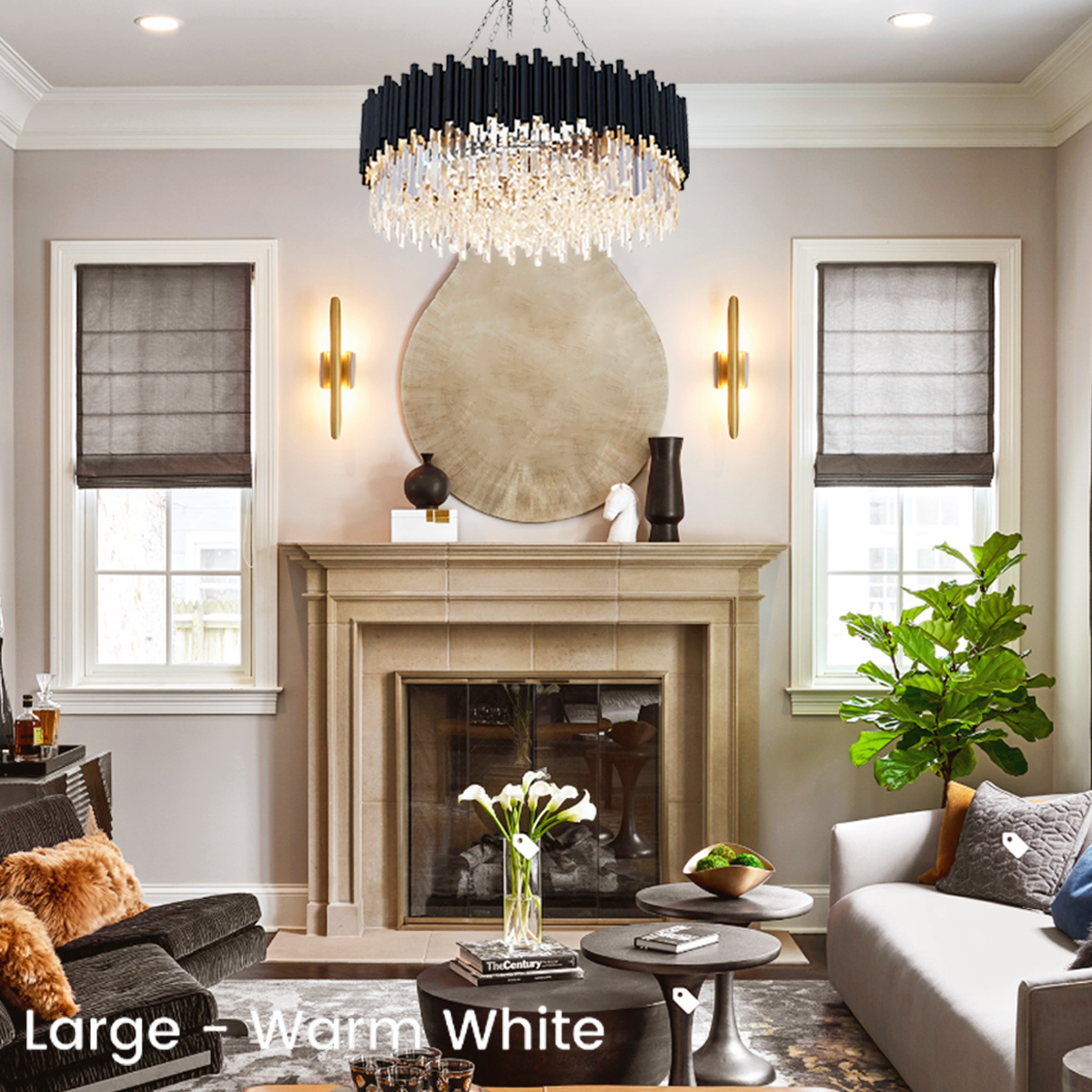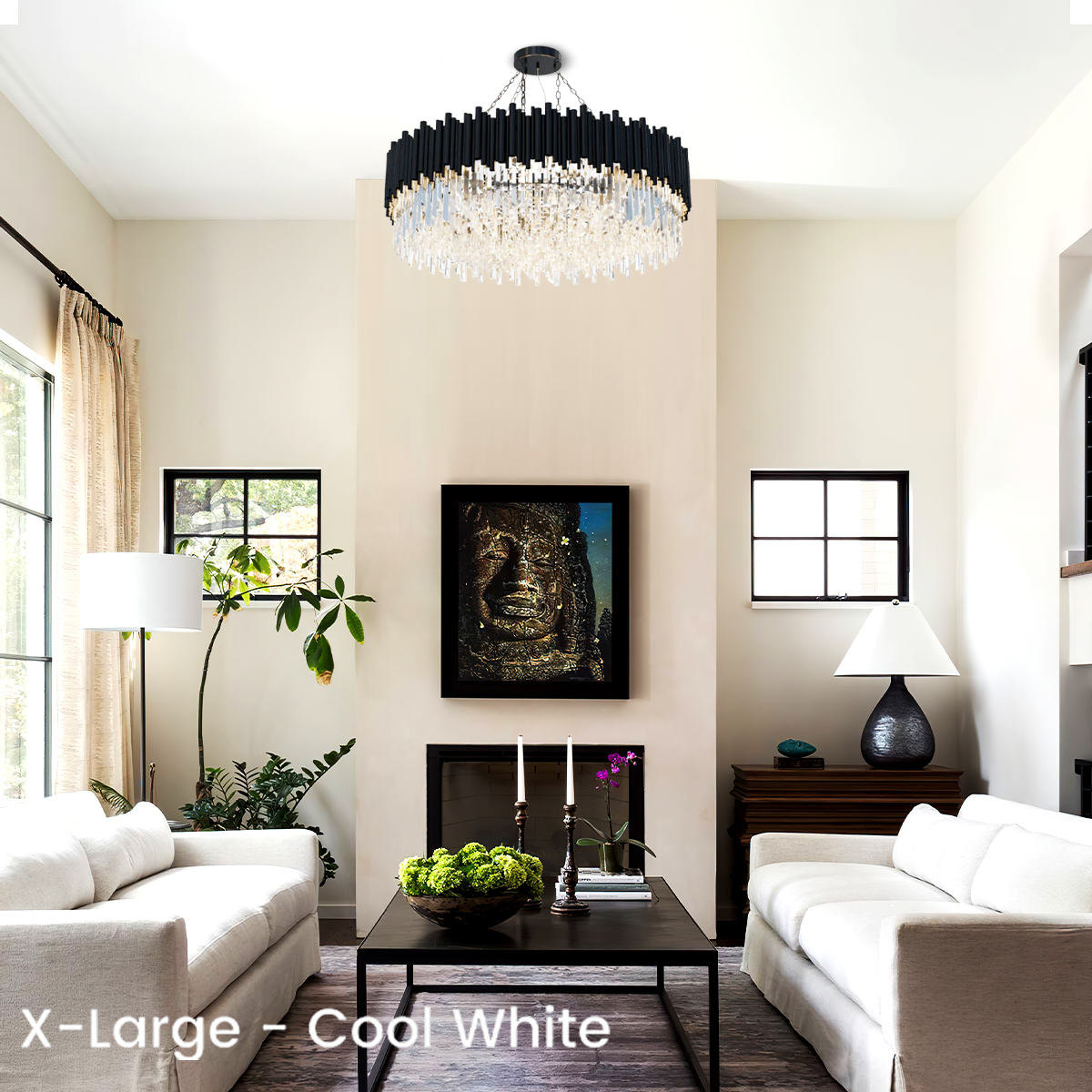 Introducing Obsidian, the epitome of sophistication and opulence in lighting design. Crafted with meticulous attention to detail, this luxurious crystal chandelier boasts a sleek black finish that exudes elegance and refinement. Each high-quality crystal sparkles with brilliance, casting enchanting reflections throughout the room. Obsidian makes a bold statement in any space, commanding attention and admiration from all who behold its beauty. Elevate your living space or dining area with the unparalleled grandeur of Obsidian for an exquisite living and dining experience like no other.