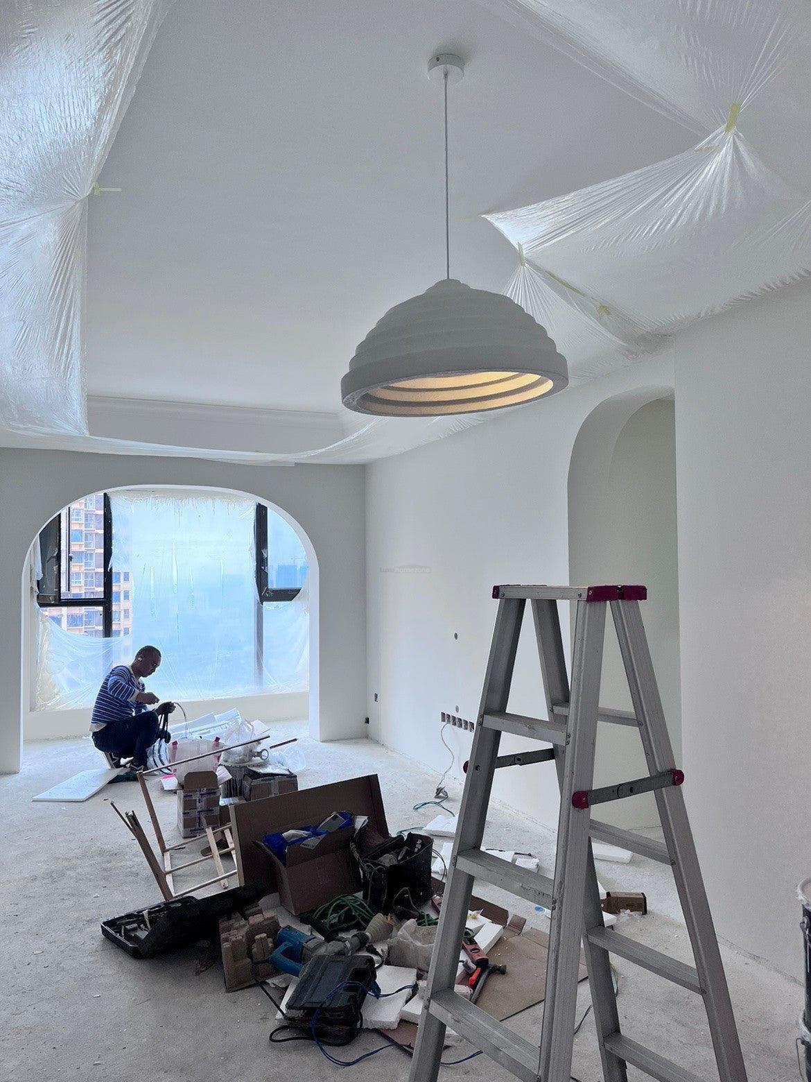 The 'Rice Field' acoustic lighting series draws inspiration from the shape of rice fields, emphasizing the significance of acoustics and light in interior design. Crafted from acrylic material with strong light transmission, these acoustic lamps feature extrusions on the flat surface to enhance the volume of the shape, improving effectiveness. The combination of these elements with high-quality LED lighting creates an inventive system that efficiently controls both light and sound in interior spaces.